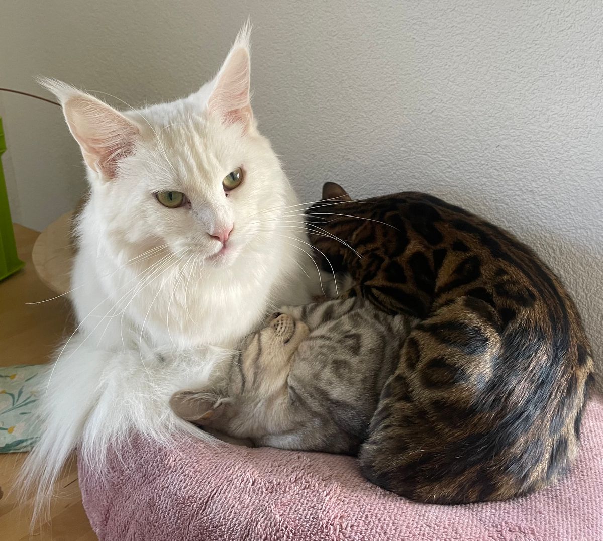 Das tierische Team wird durch drei amerikanische Waldkatzen (Main Coon) mit Ihrem Kater Leonardo und dem Bengalpärchen Anthonia und Chester ergänzt.